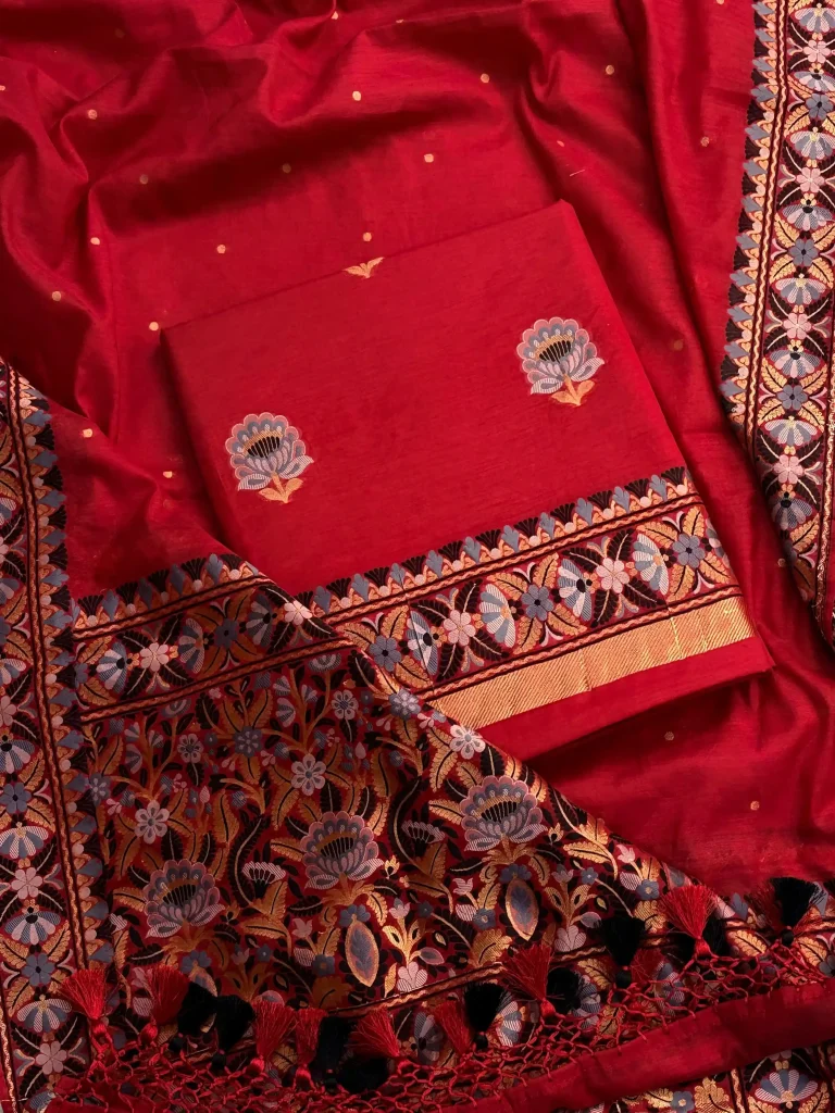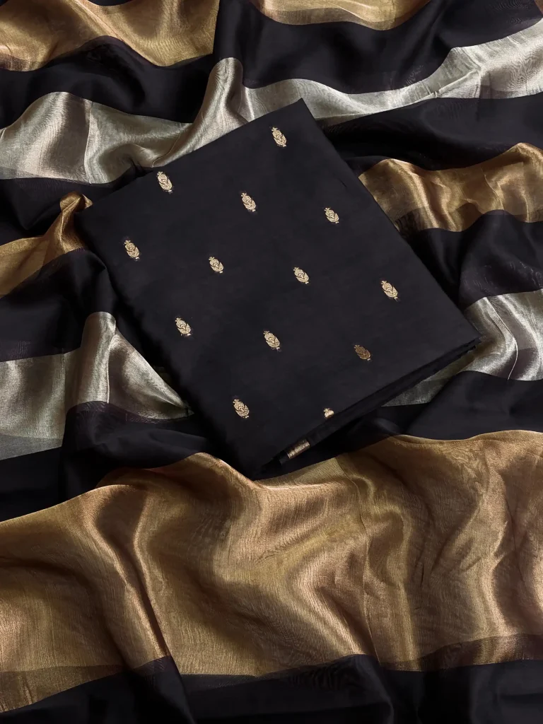 Top: Pure Chanderi Silk Booti Suit 2.5mtr each